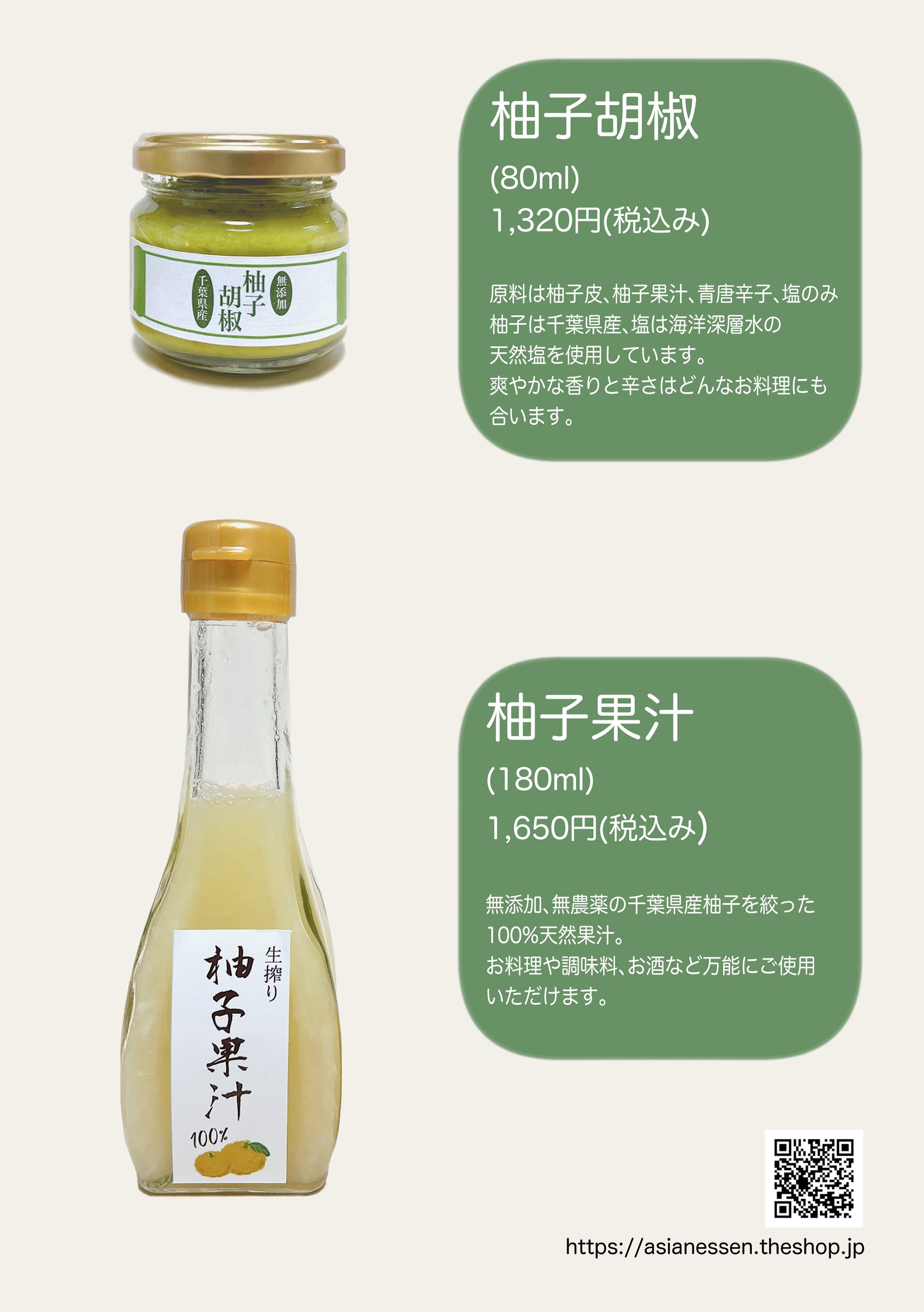 柚子胡椒:柚子、青唐辛子、食塩/柚子果汁:柚子